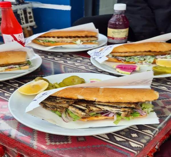 4 ADET EKMEK ARASINDA BOL KILÇIKSIZ HAMSİ MARUL ROKA DOMATES İLE