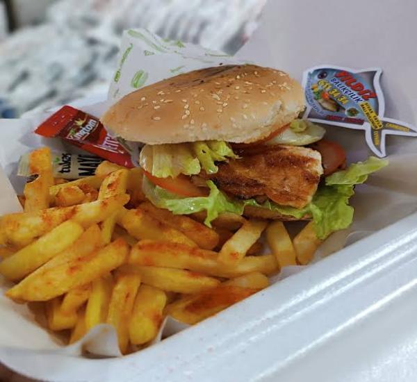 FİLETO ÇİPURA MARUL KORNİŞON DOMATES PATATES CİPSİ İLE BERABER