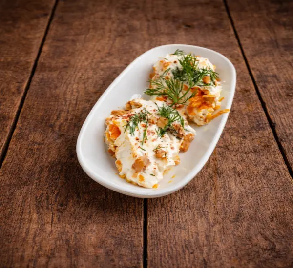 İçeriği kızarmış Kabak Kızarmış Havuç Süzme yoğurt Dereotu ceviz